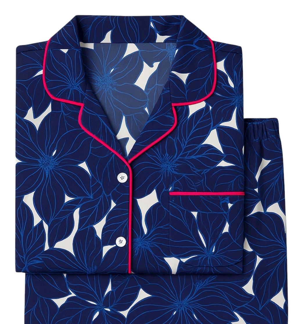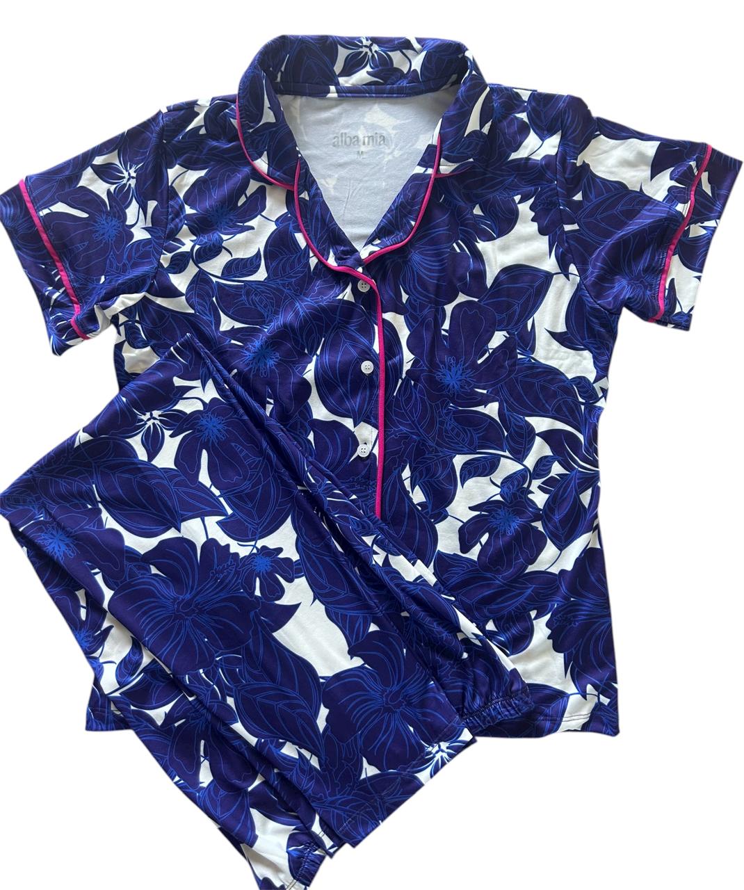 Azul profundo manga corta camisa/pantalón